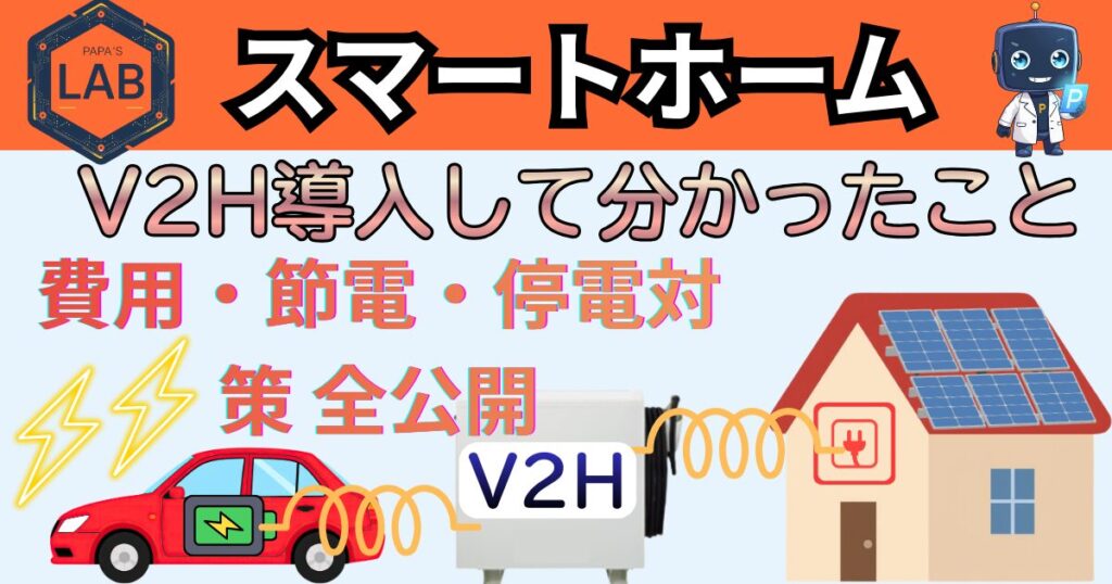 はじめに|V2Hに500万円かけた我が家のリアルな話 [前の記事]では、太陽光パネル(8kW)とV2Hを含む総額約500万円の設備導入と、実際の電気代について紹介しました。 今回はその中でも「V2H」に絞って、より詳しく解説します。 V2Hは「Vehicle to Home」の... -