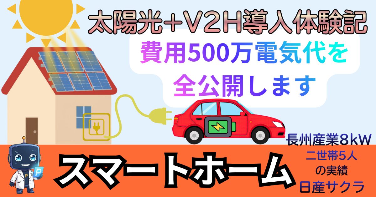 我が家は太陽光8kW + ニチコン V2H(プレミアムモデル) + 日産サクラという構成で運用しており、電気代・ガソリン代を大幅に削減することができました。